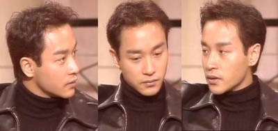 一直觉得“今夜不设防”是lesile最棒的采访。他斜靠在沙发上,手里拿着烟,眼神中散发着透明的执著。他随心地谈着自己,谈曾经的快乐忧愁,他说“罗文领奖拿1个奖还不高兴”时,我真的好气又好笑,可他那认真执拗的神态,又不由使我砰然心动。难怪黄沾总忍不住想亲他,如果我是黄沾,也会拍着他的肩赞他:好样的,有性格!如果这家伙显出一脸得意,那偶一定没二话,先“嘴”一下再说了。