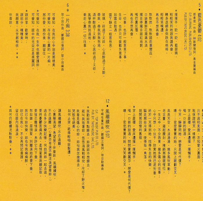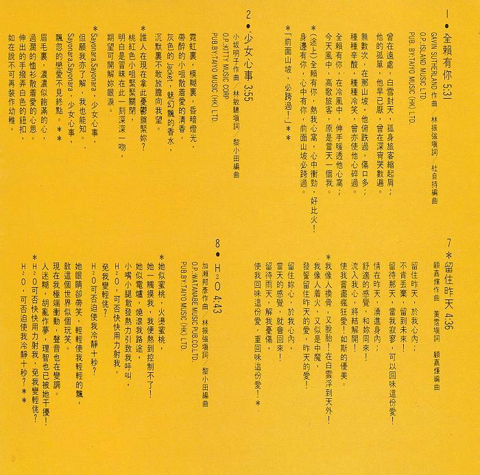 专辑歌词(带 * 的为香港本土音乐人原创作品):