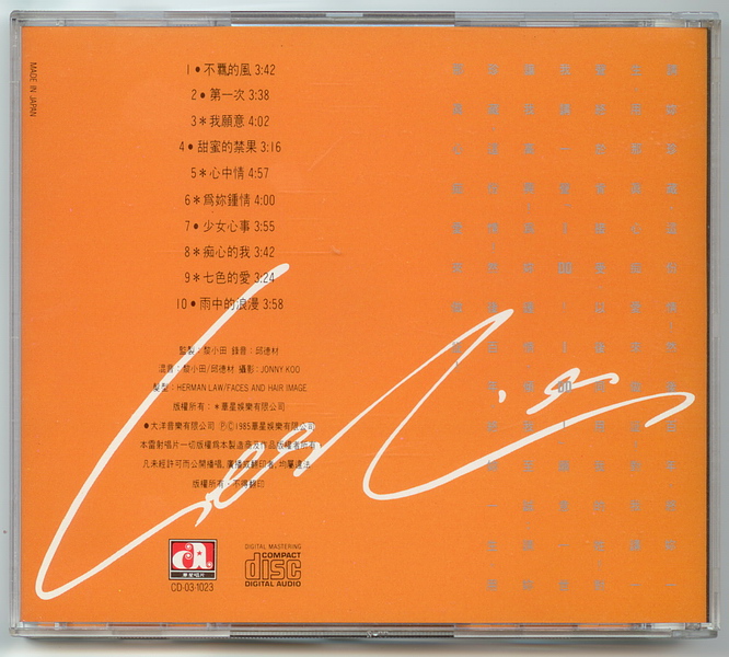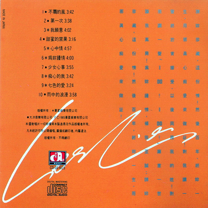 LP大碟首版为限量版白胶碟,亦是香港乐坛首张白版大碟,第二版为黑胶碟。盒带首版为黑色,第二版为白色。LESLIE英文签名首次出现于此大碟。