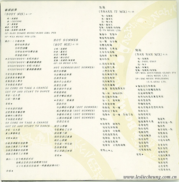 新艺宝唱片1990年发行的《Leslie Collection》精选系列之三,收录了四首remix歌曲。