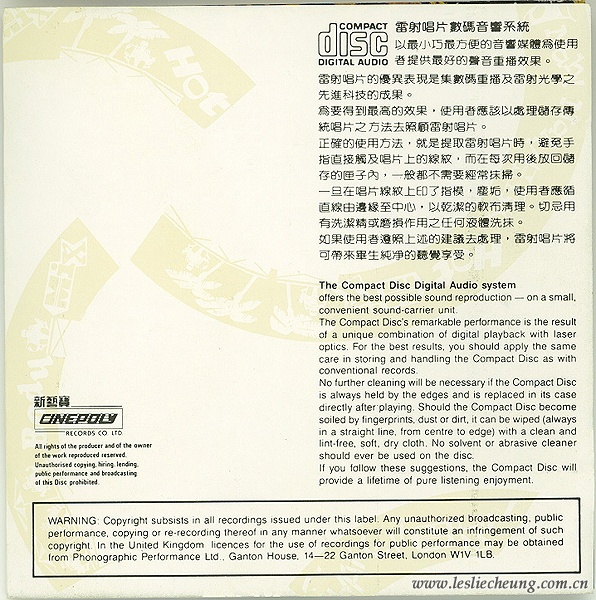 有官方资料写 Leslie Collection 这套限量版Gold CD是澳洲版,但依据本套CD的内圈镭射刻码 W.O.# 说明碟片是美国压制的,因此是美版金碟。
