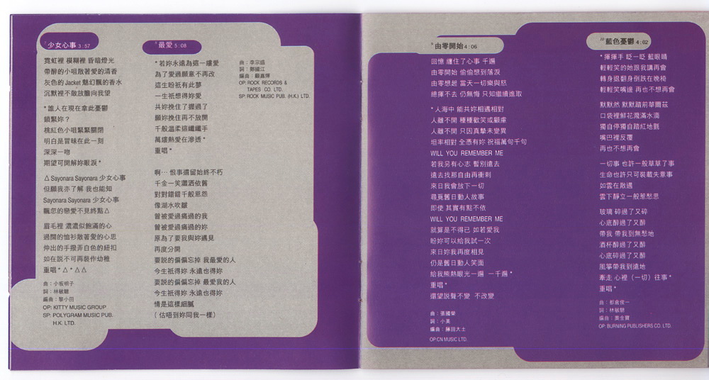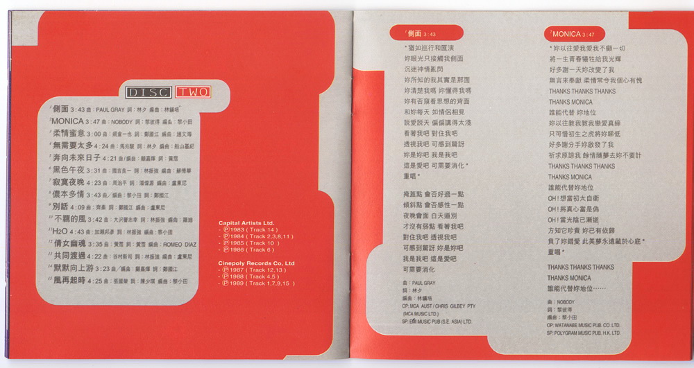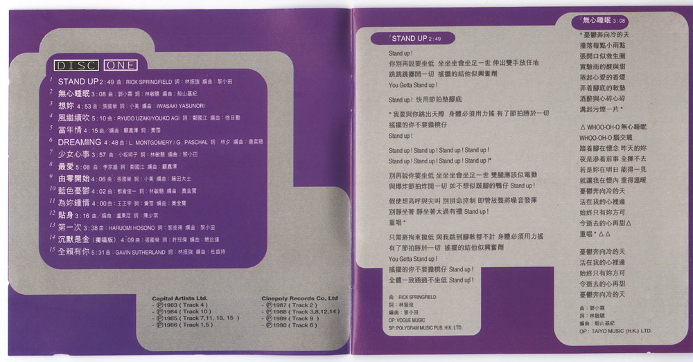 Distributed br PolyGram Records Co., Ltd., Hong Kong / Singapore / Malaysia.