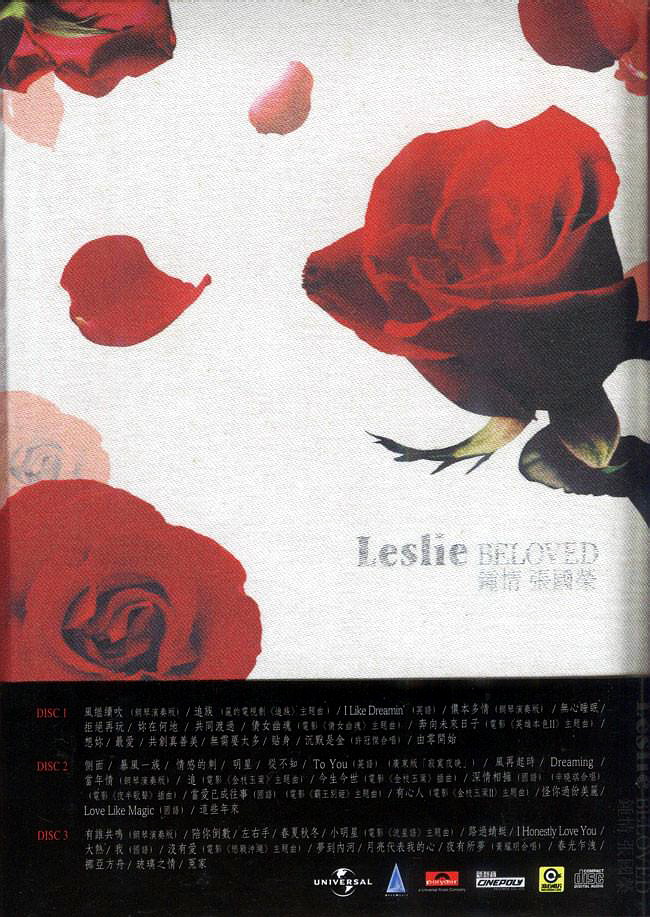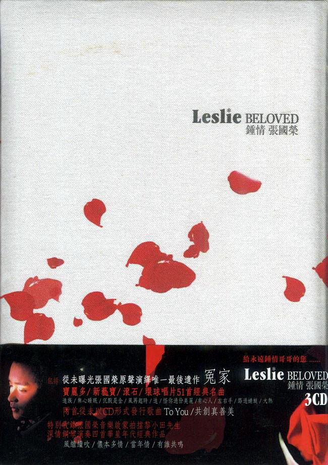 环球唱片于2004年4月1日推出3CD纪念专辑《钟情张国荣 Leslie BELOVED》(丝绒包装),以此表达对张国荣的敬意。这套精选分别记录了张国荣在宝丽金、新艺宝、环球三个时期的34首经典名曲,记录了张国荣从出道到成为天皇巨星的一段辉煌历程。