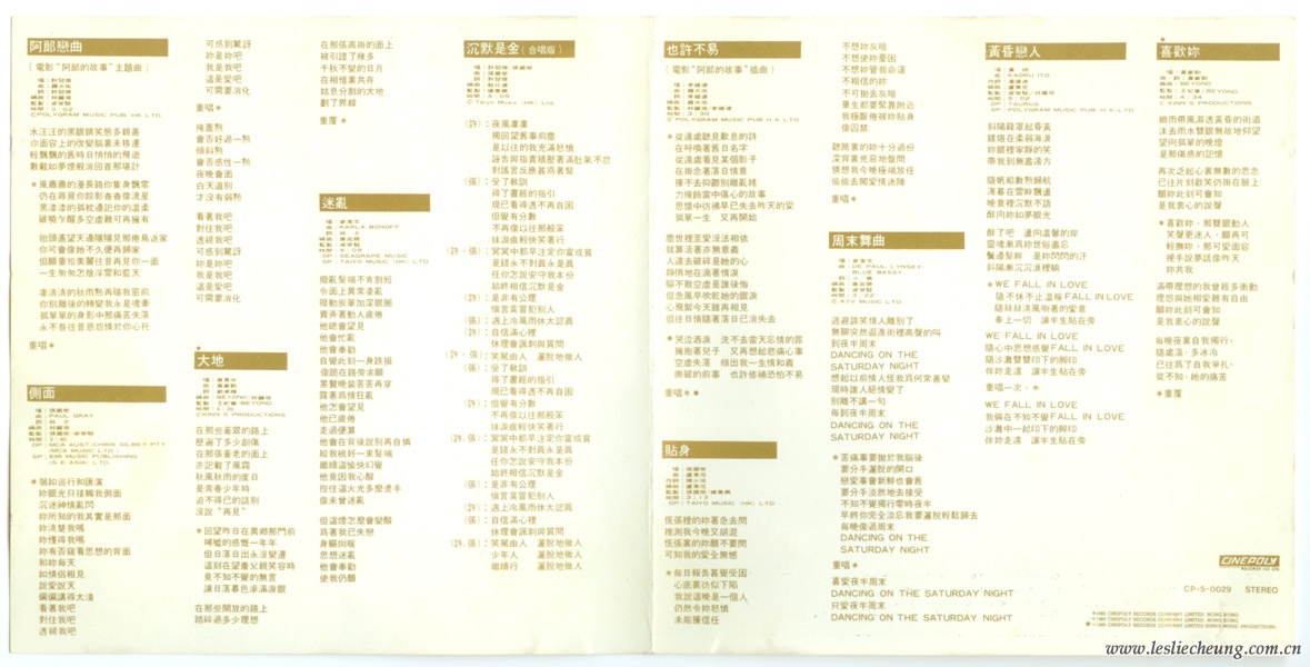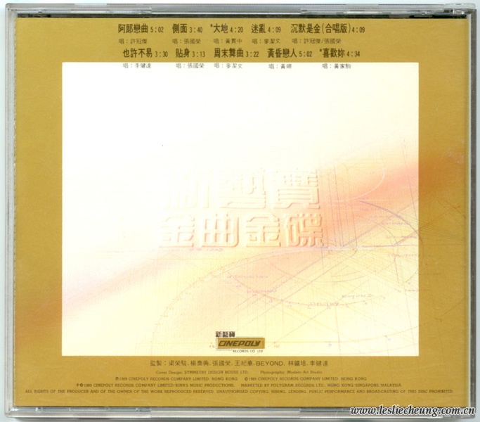* © 1989 CINEPOLY RECORDS COMPANY LIMITED/KINN'S MUSIC PRODUCTIONS. MARKETED BY POLYGRAM RECORDS LTD. HONG KONG / SINGAPORE / MALAYSIA.