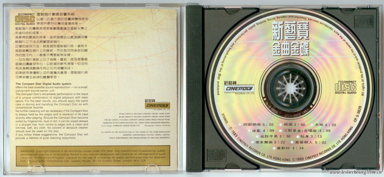 ℗ & © 1989 CINEPOLY RECORDS COMPANY LIMITED. HONG KONG