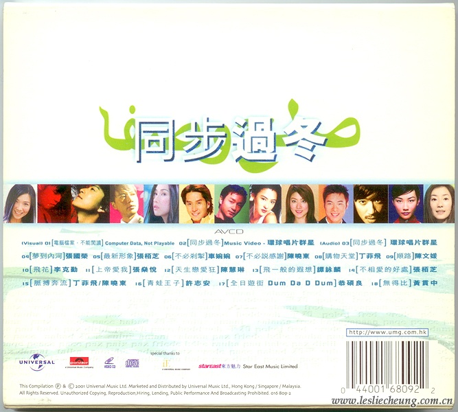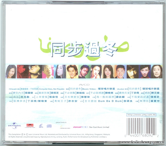 环球唱片2001年推出的群星合辑精选大碟,除了有15首由环球歌手主唱的歌曲外,还收录了主打歌 —— 由环球旗下所有歌手,包括张国荣、谭詠麟、李克勤、张柏芝、黄贯中、黄伊汶等合唱的“同步过冬”。“同步过冬”的歌词十分正面,大意是上苍会眷恋世人,而大家应携手互助同度时艰,毋惧眼前严寒及困境。